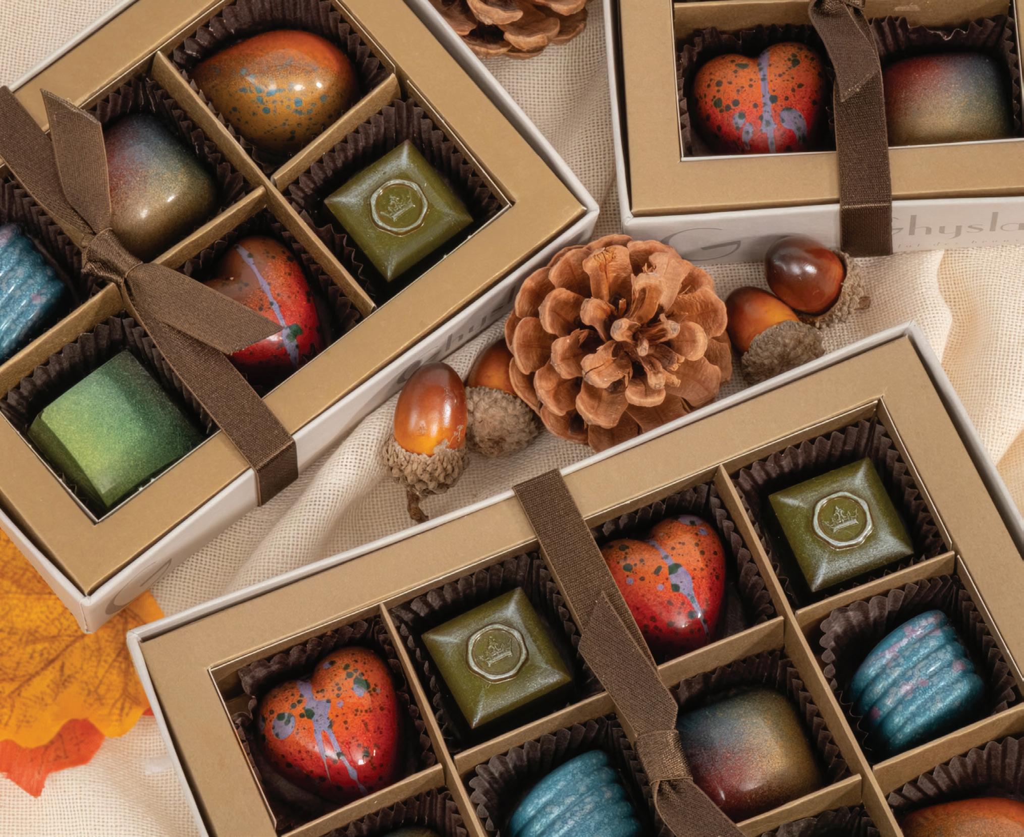 Indulge in a little something special with Ghyslain’s limited edition Fall chocolates, hand-painted in seasonal hues. Our artisans have carefully crafted six new flavors – and each piece encapsulates Fall’s finest flavors in exquisite ganaches, promising a