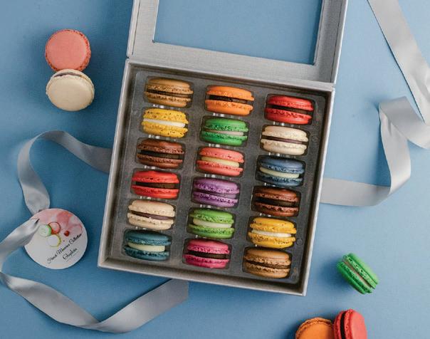 An assortment of gourmet chocolates from Ghyslain’s popular Signature and Truffle Harmonie collections beautifully presented in linen-textured silver metallic boxes enclosed with a branded watercolor paper bellyband.