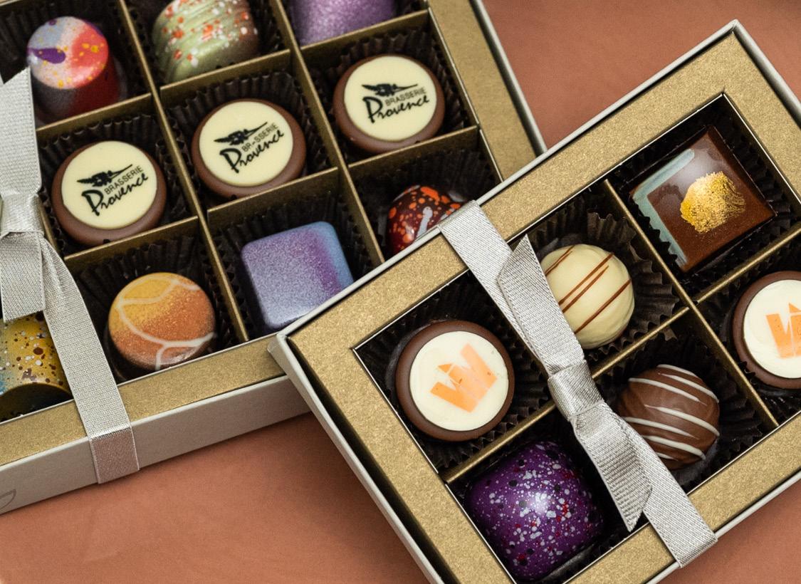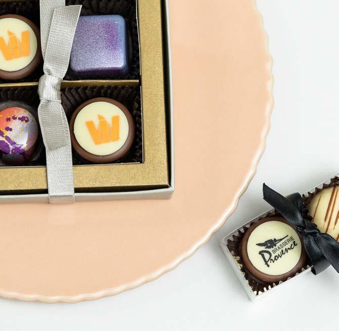 with clients, colleagues, and partners. For a truly unique touch, we can craft custom chocolates featuring your company’s logo, allowing your brand to shine through our confectionery artistry.