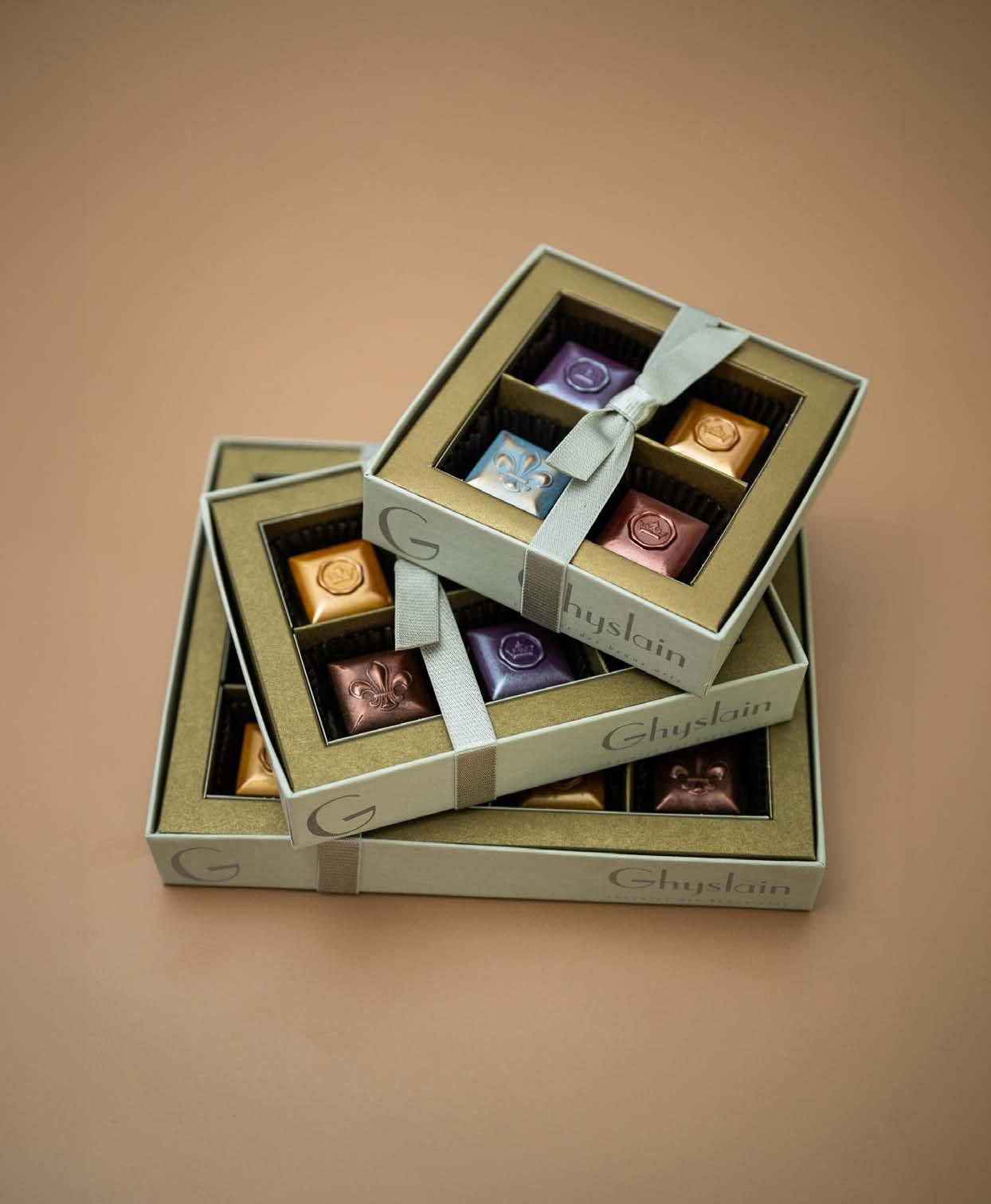 Our hallmark window boxes beautifully present an assortment of chocolates from Ghyslain’s popular Signature, Collection de Caramel and Truffle Harmonie collections.