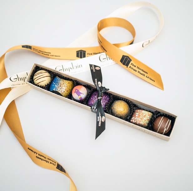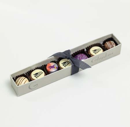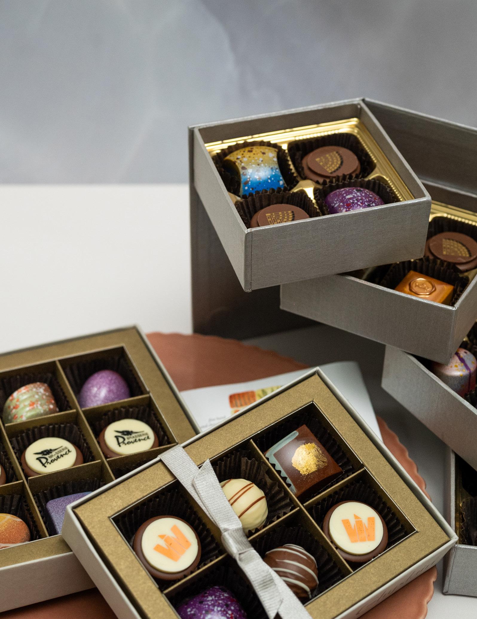 Our hallmark Ghyslain branded window boxes and sleeves featuring a delectable assortment of chocolates exclusively from our Truffle Harmonie Collection.