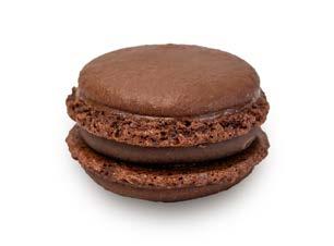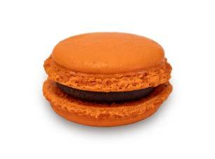 Caramel macaron with milk chocolate ganache and a caramel center.
