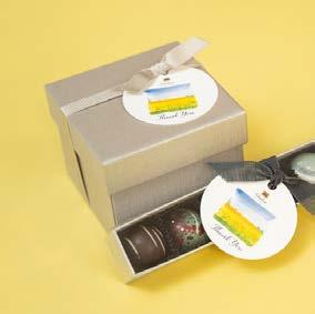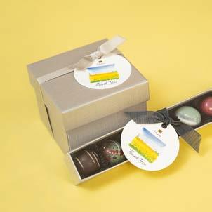 Present your chocolate assortment in one of our sophisticated multi-tiered silver metallic linen boxes enclosed with your custom logo satin ribbon.