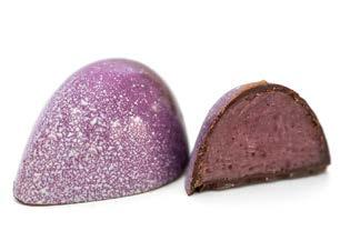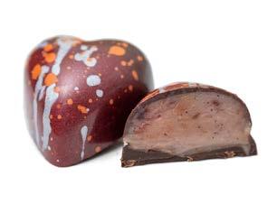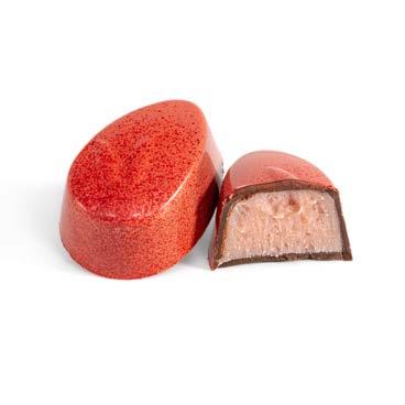 Hand-painted dark chocolate shell filled with white chocolate ganache infused with strawberries. WHOLESALE 1.25 • RETAIL 2.30