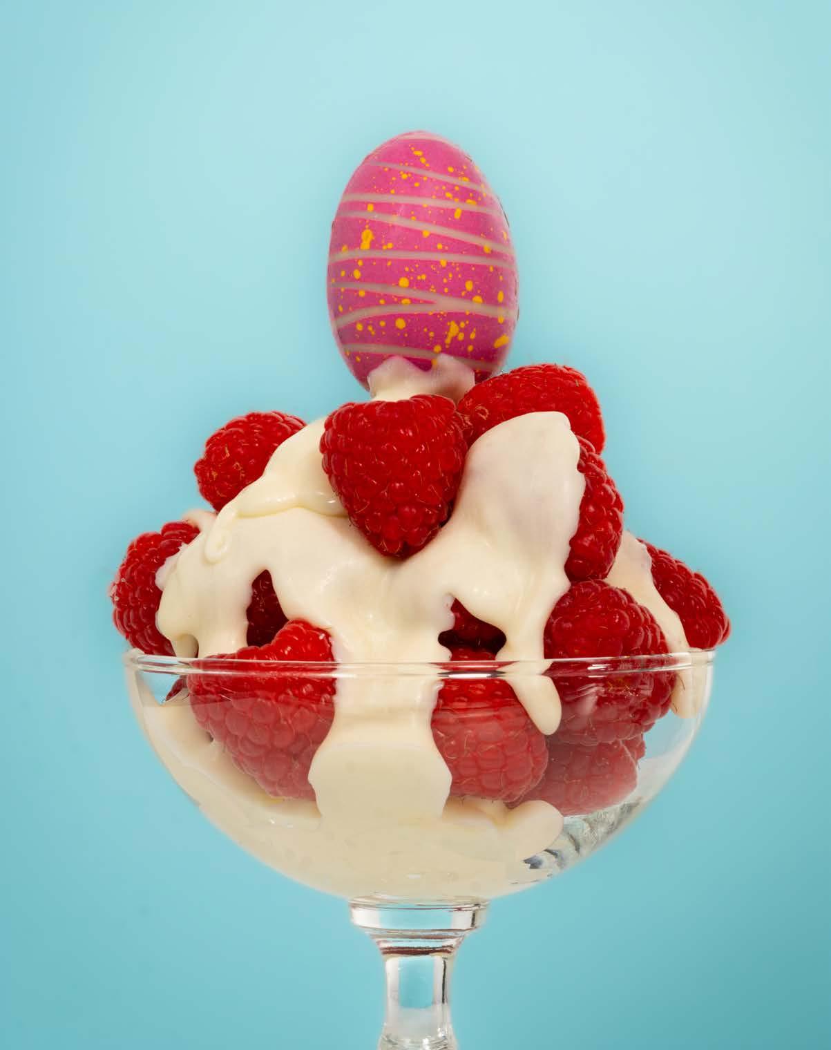 White chocolate ganache infused with raspberry Chambord extract and raspberry purée.
