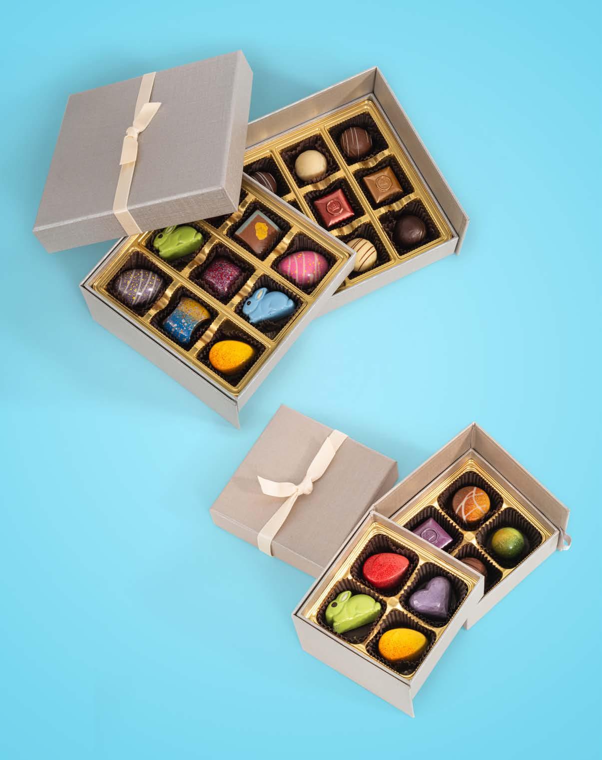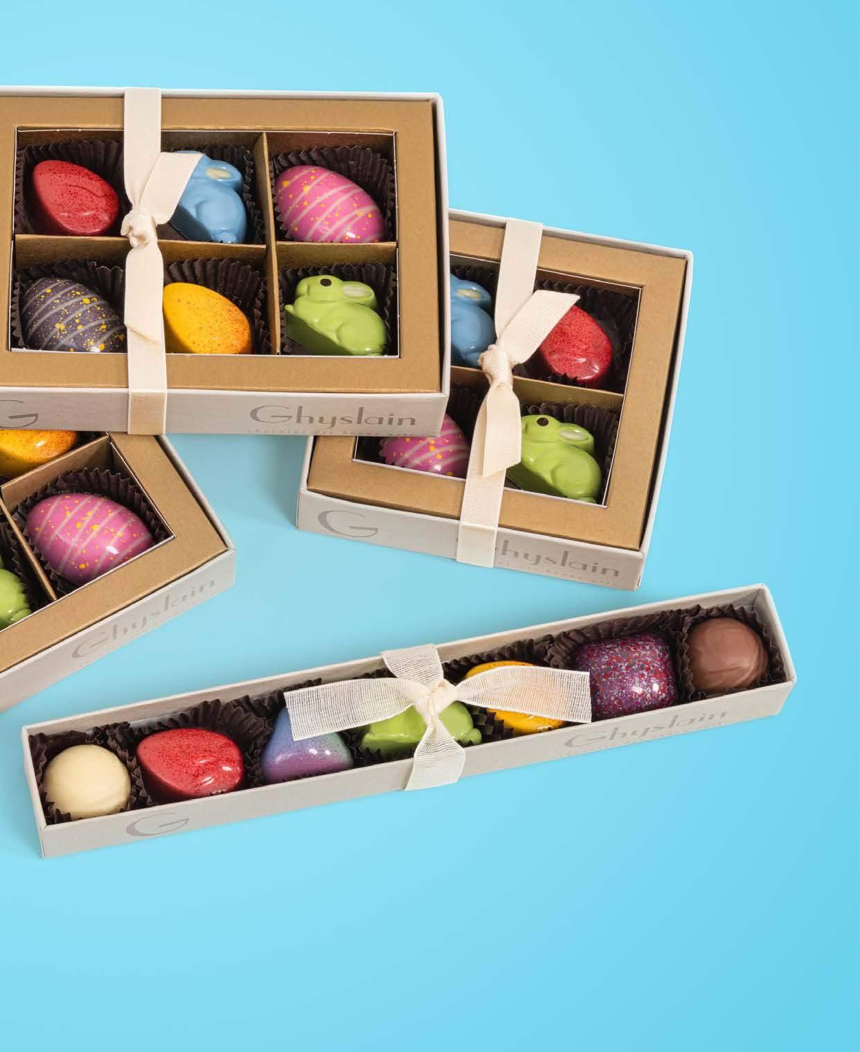 Our Signature window boxes beautifully present an assortment of delicious hand-painted chocolates from Ghyslain’s Easter Collection.