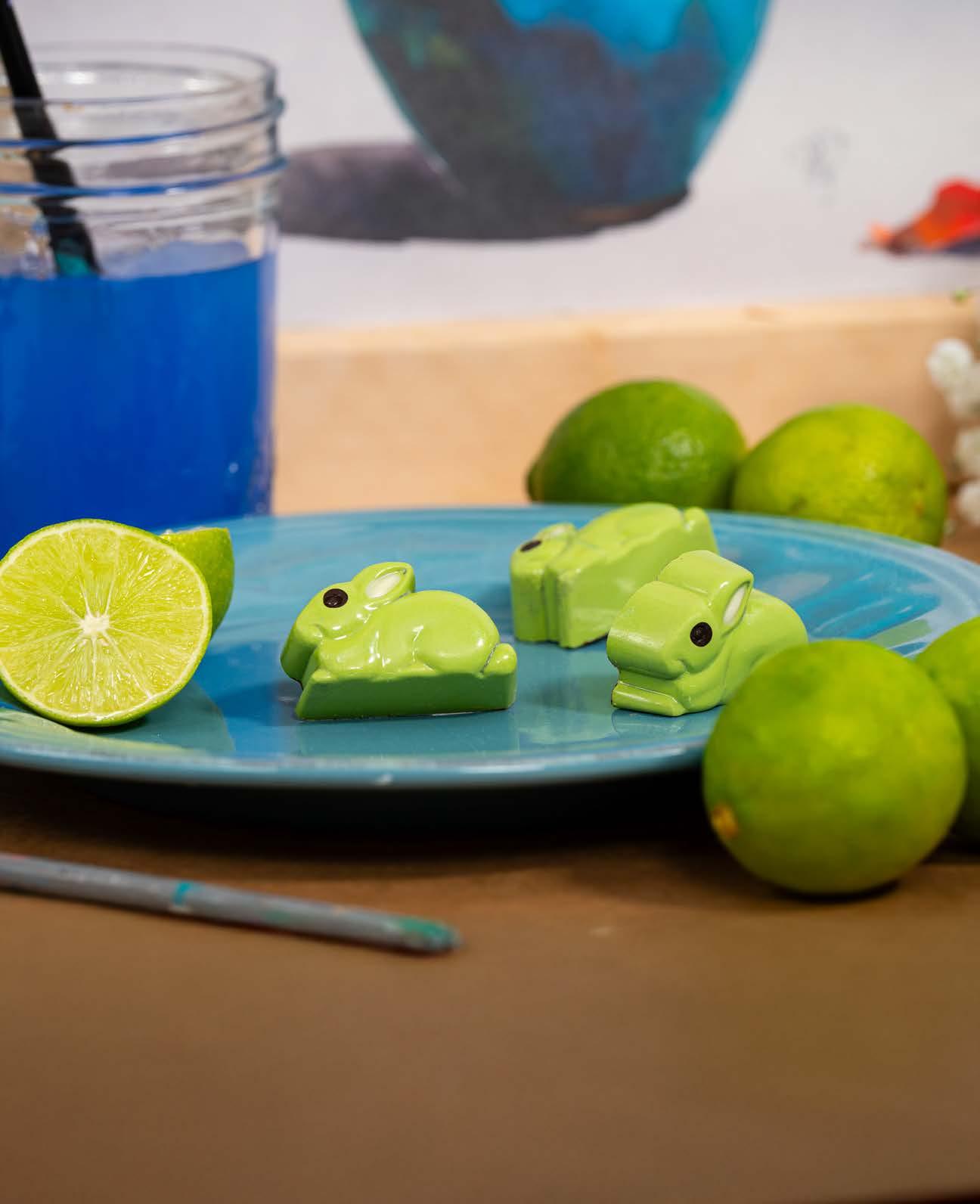 Hand-painted dark chocolate shell filled with house-made buttery caramel infused with key lime.