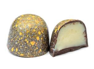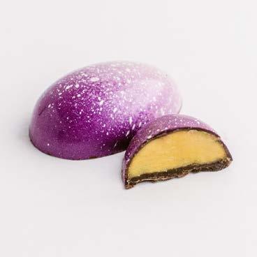 Milk chocolate shell with passion fruit juice infused butter caramel