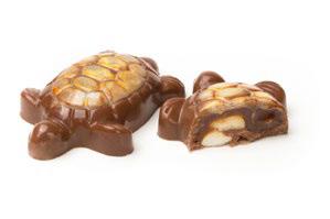 Hand-painted milk chocolate Corals with Ghyslain’s signature caramel and decorated with vibrantly colored pure cocoa butter. Each represents a different toasted gourmet nut delicately tucked into a shell filled with butter caramel.
