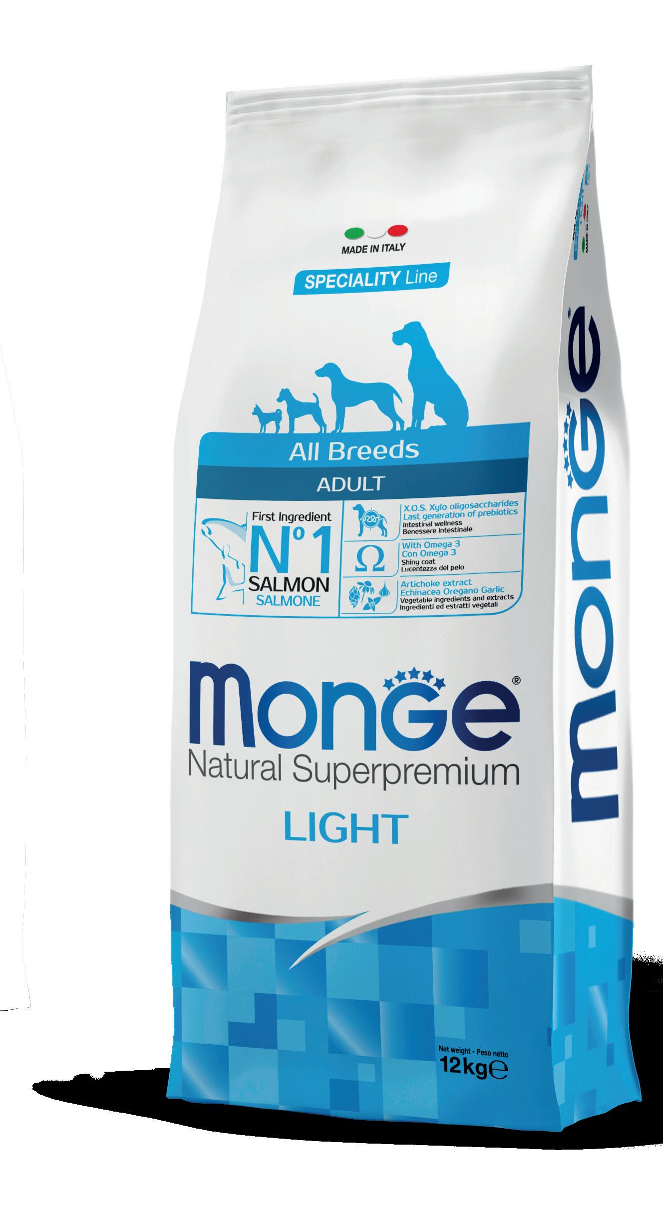 Le crocchette Monge Natural Superpremium Speciality Line Adult Light con salmone e riso, sono un alimento completo e bilanciato per cani adulti di tutte le razze con tendenza al sovrappeso o con fabbisogni energetici ridotti. Ideale da utilizzare nei periodi più caldi per la sua alta digeribilità.