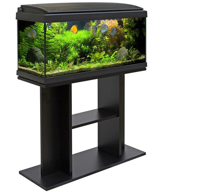 cm 80,5x30,7x47 h, capacità 93 lt acquario completo di sistema d’illuminazione LED, filtro biologico, pompa e termoriscaldatore. Include elegante, solido e robusto tavolo (mis. cm 80x30x66 h) con ampio spazio per riporre i mangimi e i prodotti per il vostro acquario. Disponibile nei colori bianco o nero