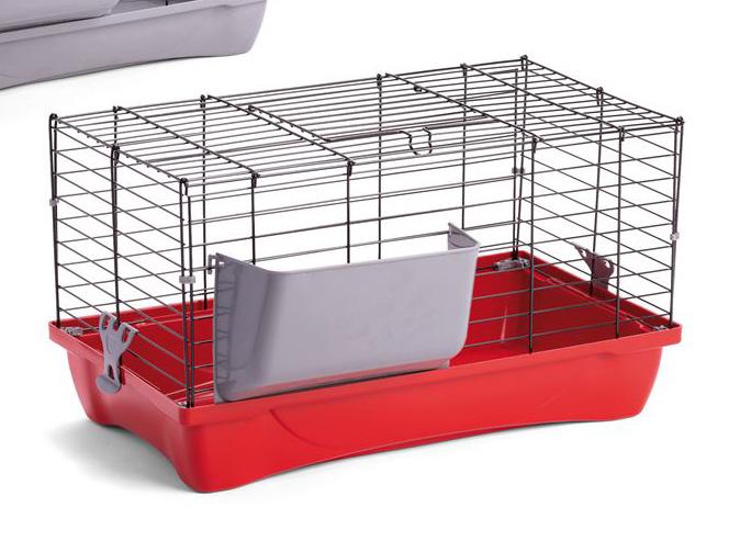 GABBIA CAVIA 1 cm 58x32x34 h ideale per cavie e conigli, completa di beverino e portafieno. Disponibile nei colori rosso e grigio