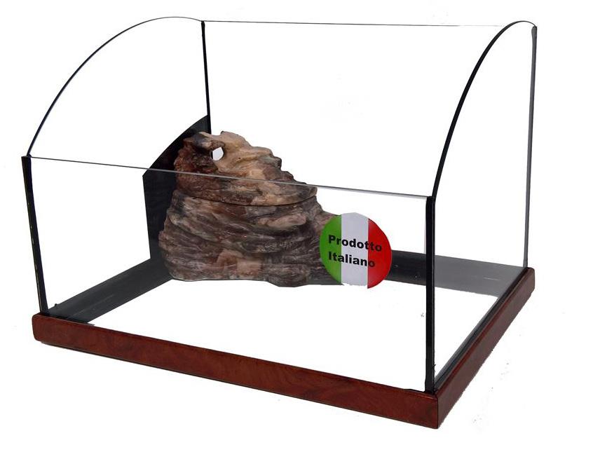 TARTAFLY cm 50x30x34 h in vetro, profilo in legno e isola roccia