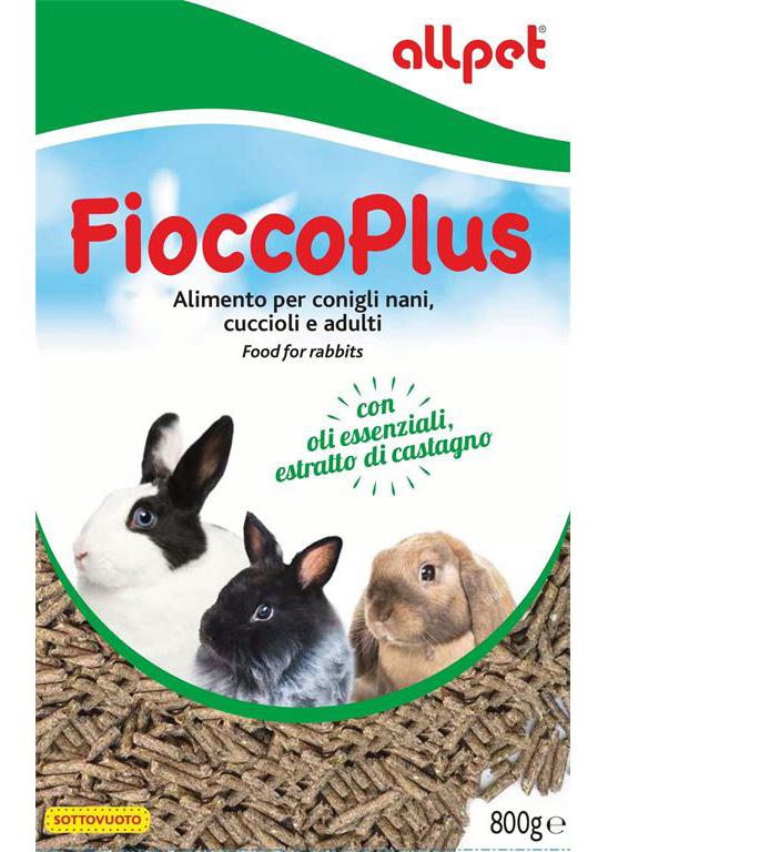 FIOCCO PLUS 800 g alimento completo in pellet per conigli nani, cuccioli e adulti, arricchito con oli essenziali ed estratto di castagno