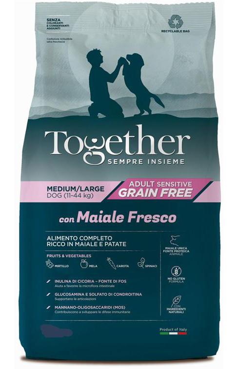 TOGETHER DOG 12 kg alimento secco, completo, per cani. Senza glutine e realizzato con ingredienti naturali
