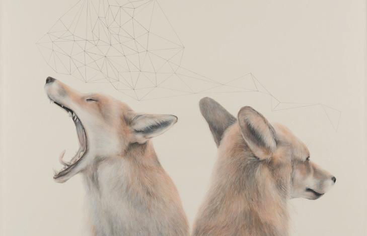 Constant Cycles Strung Together, 2014, by JenMarie Zeleznak (United States, b. 1984). Watercolor and graphite pencil on paper, 35 × 44 ¼ inches. Gift of the 2015 Blacktail Gala, National Museum of Wildlife Art. © JenMarie Zeleznak.