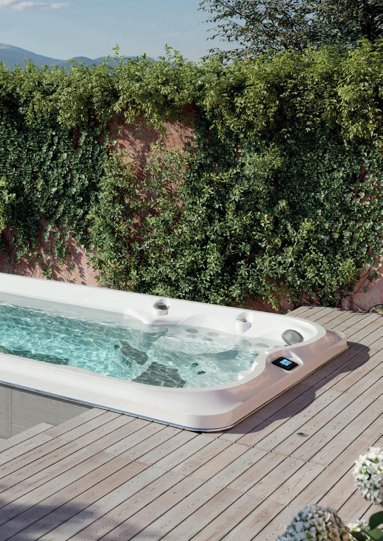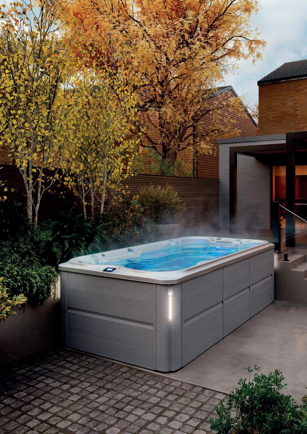Get into and out of your Jacuzzi® Swim Spa with ease using the long-lasting and weatherresistant Versastep™.