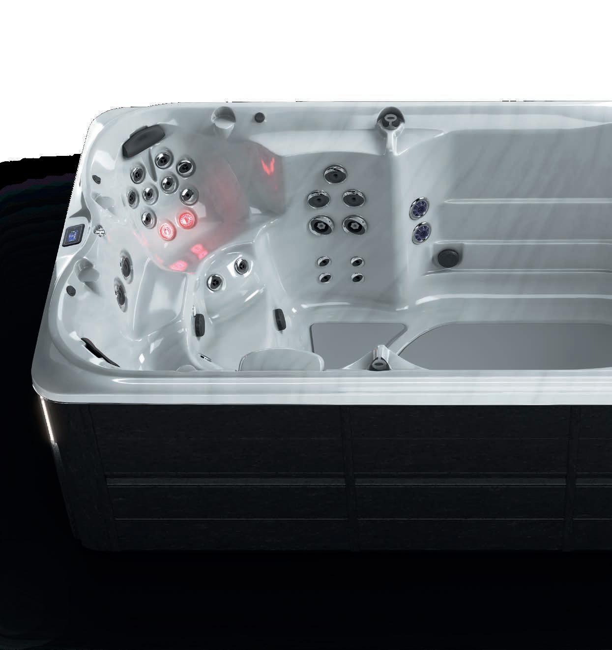 Set your swim speed or choose from preprogrammed workouts using the convenient Swim Selector Control. When it’s time to unwind, you’ll find the hydrotherapy control within reach of each of the therapy seats and Infrared and Red Light technology.