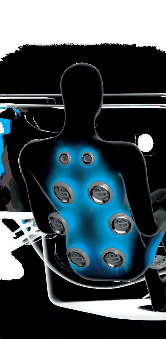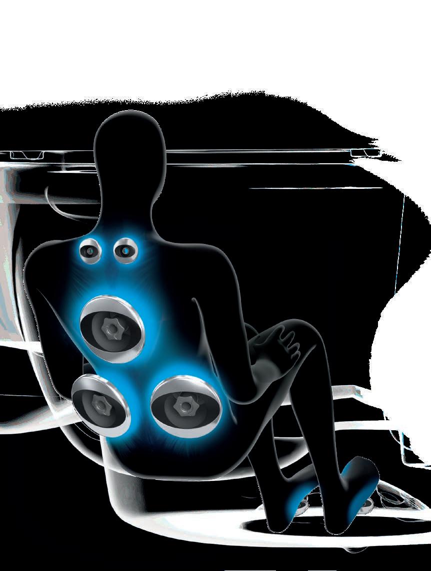 Ease into this deeply contoured seat to release tension in the lower back with a high-volume, lowpressure massage. Maximized air output delivers a soothing deep tissue massage. Paired with neck jets for a fully relaxing experience.
