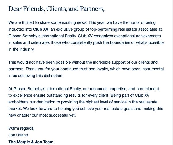 Thank you for the opportunity to show you the difference Gibson Sotheby?s International Realty can make as your partner.