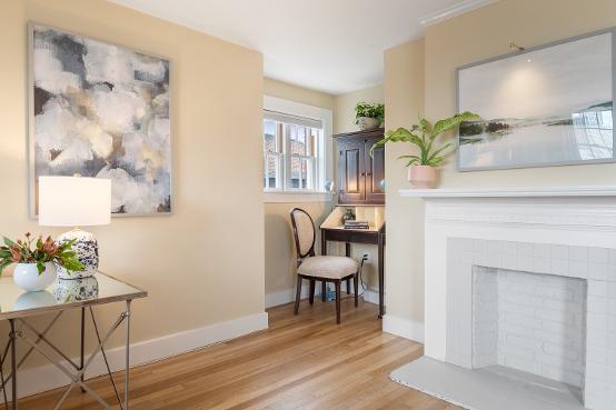 Delightful sunny penthouse with newly refinished private deck and *roof rights* at an amazing Beacon Hill location! Absolutely fantastic layout with a large living/dining room, this bright condo features captivating views and SUN! Offering newer windows and a beautiful new French doors, Unit 5 has three exposures, an inviting feel and a desirable locale atop Beacon Hill's picturesque Mt Vernon St Hardwood flooring and a decorative fireplace complement the spacious living rm A lovely dining area is perfectly positioned adjacent to the kitchen and near the unit's private deck Two front facing bedrooms overlook Mt Vernon St, each nicely sized and with good closet/storage space The South facing sun is exceptional Central air/mini splits were replaced throughout approximately four years ago Crisp bathroom perfectly situated, charming kitchen with window, and nicely maintained common areas The building is professionally managed,has high owner occupancy,a healthy capital reserve and is pet friendly