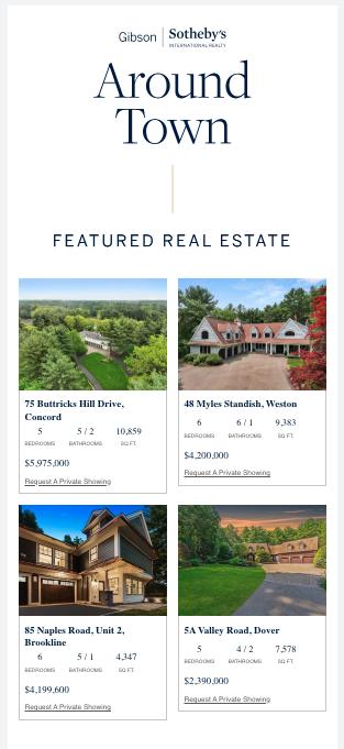 - Email blast to Gibson Sotheby's International Realty agents and brokerage community