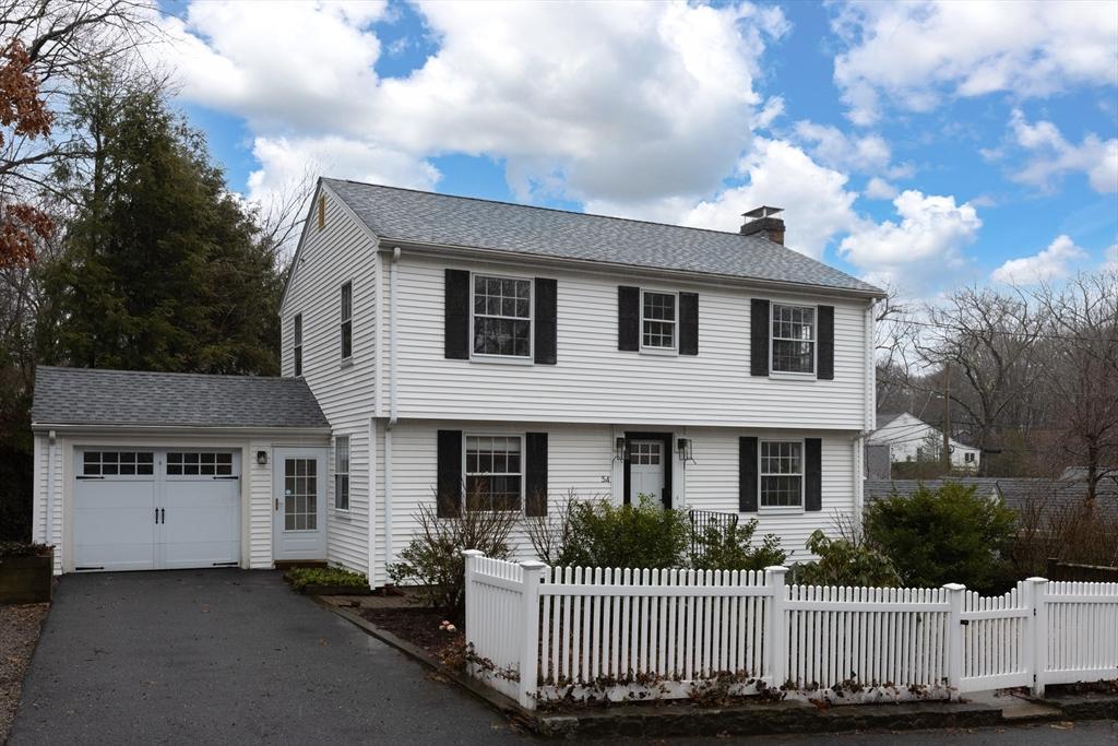 Nestled behind a white picket fence on an idyllic Brookline block near Allandale Farm, this classic New England Colonial exudes warmth, elegance, and architectural charm. The gracious formal living room offers a fireplace and gorgeous millwork. A handsome dining room flows into the expanded eat-in-kitchen with white cabinets, granite countertops, cathedral ceilings, solar-powered skylights, and views to the thoughtfully landscaped backyard and patio. A versatile first floor family room or office also overlooks the garden. Upstairs there are three bedrooms, including an expansive primary bedroom with double closets. The fabulous finished lower level offers a versatile play or rec room, a guest or exercise space, a full bath, and a laundry room. Numerous infrastructure upgrades including a modern boiler and new interior paint. One-car attached garage. Central air. Coveted Chestnut Hill location near shopping, restaurants, the Putterham Library, and public and private schools.