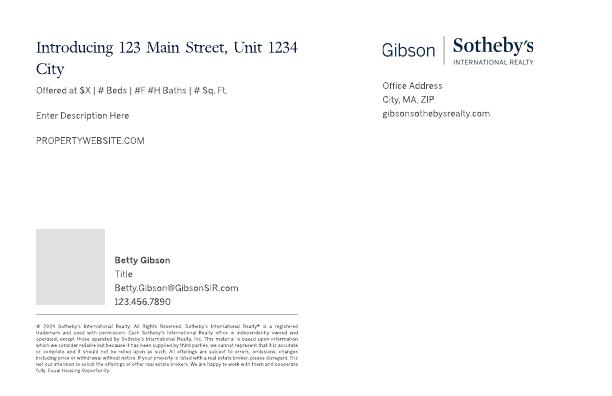 - Property will be displayed on gibsonsothebysrealty.com and sothebysrealty.com