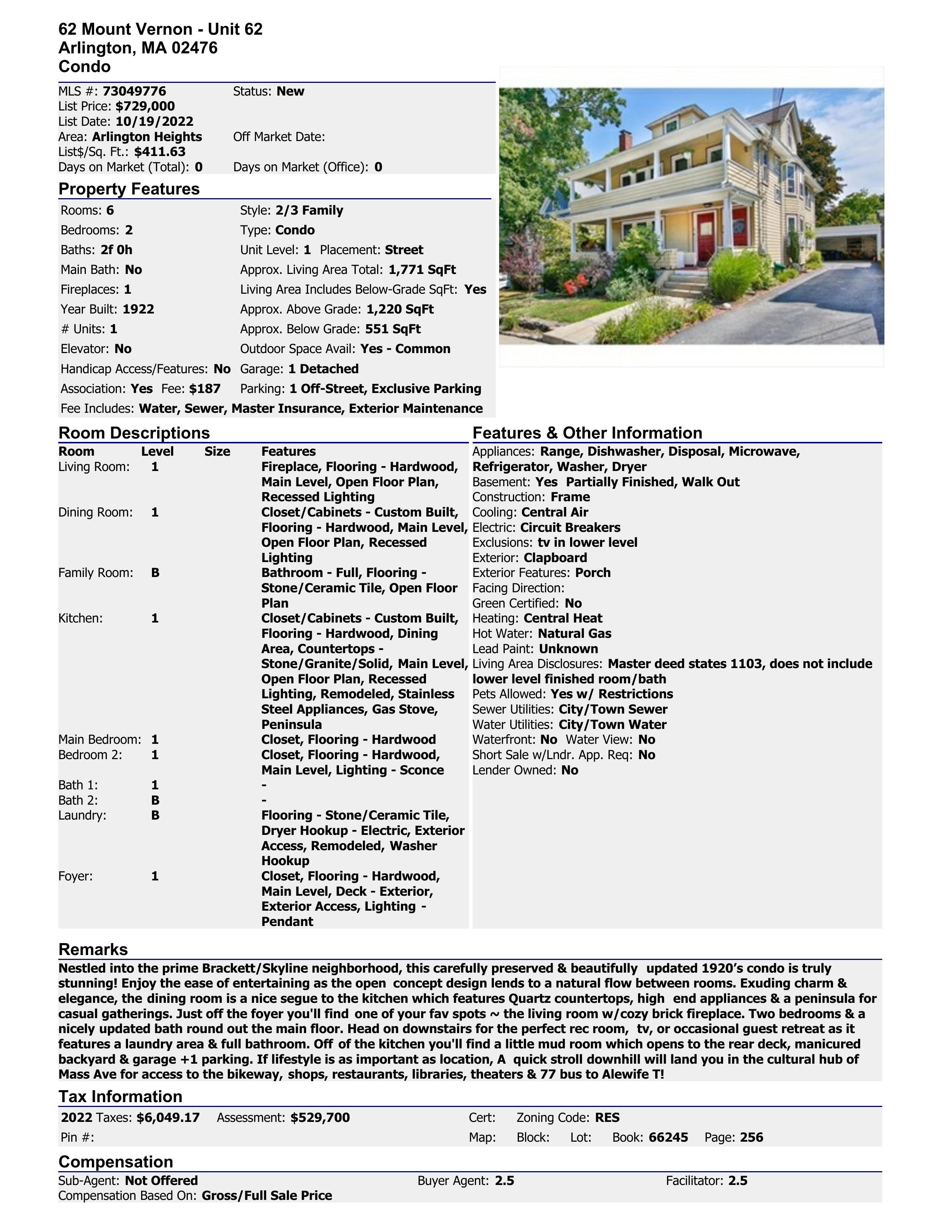 Nestled into the prime Brackett/Skyline neighborhood, this carefully preserved and beautifully updated 1920?scondoistruly stunning! Enjoy theeaseof entertainingastheopenconcept design lendsto anatural flow between rooms Exuding charm and elegance, the dining room is a nice segue to the kitchen which features Quartz countertops, high-end appliances, and a peninsula for casual gatherings. Just off the foyer, you'll find oneof your favoritespots; thelivingroom with acozy brick fireplace. Two bedrooms and anicely updatedbathroundout themainfloor Headondownstairsfor theperfect recreationroom,tv,or occasional guest retreat asit featuresalaundryareaandafull bathroom.Off of thekitchen,you'll findalittlemudroom that opens to therear deck, manicured backyard and garageplus oneparking. If lifestyleis as important as location, a quick stroll downhill will land you in the cultural hub of Mass Avenue for access to the bikeway, shops,restaurants,libraries,theatersand77bustoAlewifeT!
