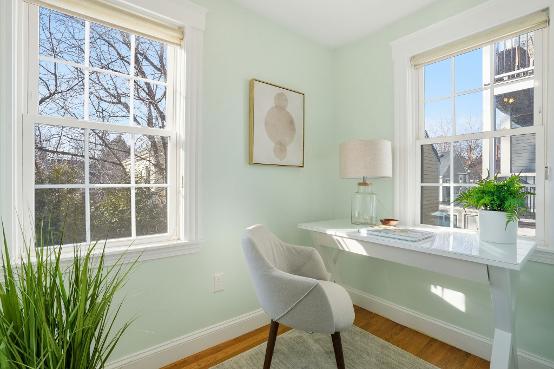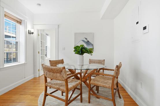 condominium offers an ideal blend of city convenience and comfortable living Set on the second floor of a charming 5-unit brick building, the home is filled with natural light from a series of large windows spanning the length of the unit. The expansive living area provides ample space for entertaining, dining, and everyday relaxation Toward the rear, the eat-in kitchen features stainless steel appliances and opens directly to a private porch? perfect for morning coffee or evening unwinding A thoughtfully designed office nook incorporates in-unit laundry, while the residence also includes private basement storage. Renovated approximately 10 years ago, the unit showcases hardwood floors throughout, high ceilings,and a smart,efficient layout