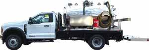 2024 Ford F550 4x4 equipped with 1200-gallon 2C (300 water/950 waste), with a Masport HD4 hydraulic drive with a cooler, dual-sided service, 50’ hose spring rewind DC 10 water pump, dual-side bucket fill, dual 36” toolboxes, dual-side 2” x 30’ Tigertail suction hose, dual-side bucket holder, chemical holder drivers-side, dual-side wand holders