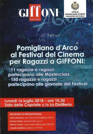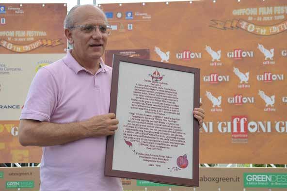 altro ha saputo rappresentare la bellezza, l’energia e la capacità di aggregazione, mettendo insieme culture e realtà diverse e dando vita ad un’iniziativa unica a livello mondiale. Alla cerimonia hanno partecipato il Ministro per lo Sviluppo Economico, Poste e Telecomunicazioni, Giancarlo Giorgetti, il Presidente dell’Istituto Poligrafico e Zecca dello Stato, Antonio Palma, il direttore e fondatore di Giffoni Claudio Gubitosi, la responsabile area Centro – Sud di Poste Italiane, Roberta Serrantonio, il direttore generale di Giffoni, Jacopo Gubitosi, il presidente dell’Ente Autonomo Giffoni Experience, Pietro Rinaldi, il sindaco di Giffoni Valle Piana, Antonio Giuliano. Presente Federica D’Ambrosio, giovane artista salernitana che ha realizzato il francobollo.