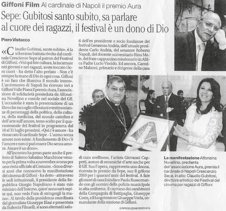 • Inestimabile è, inoltre, il ritorno d’immagine e quello turistico derivante da alcuni aspetti, per esempio: quanto valgono le dichiarazioni di un grande Premio Oscar come Richard Gere che annuncia di aver trovato l’amore in Costiera Amalfitana quando era in visita in Campania invitato da Giffoni?