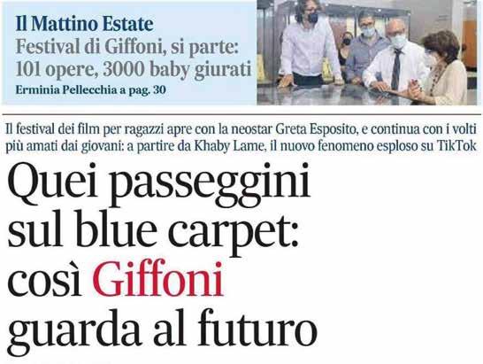 investimenti dei finanziatori pubblici del 220%. Un valore fondamentale è quello del ritorno d’immagine per l’intera area di interesse, per la Regione Campania e per l’intero Paese. Dati della piattaforma di analisi intermediale Kantarmedia, certificano un OTS (relativo esclusivamente al 2021) di 330.000.000 di opportunità di visione generate, così suddivise: 187.825.205 tramite siti d’informazione web, 56.496.912 da articoli su quotidiani nazionali, 91.885.140 dall’audience delle principali tv nazionali, 2.955.258 dalle principali radio nazionali. Il totale degli articoli è 12.400, suddivisi in 11.612 web, 688 articoli sui principali quotidiani nazionali, 114 servizi nei principali TG di Mediaset, Rai e Sky, 2 special su Canale5, 15 interviste radiofoniche. Qualora qualsiasi ente volesse mettere in campo una simile campagna di comunicazione, il costo certificato di quest’ultima sarebbe di 25.400.000 €. Sommando i dati provenienti dalle piattaforme di media monitoring a cui Giffoni ha affidato le analisi negli ultimi venti anni