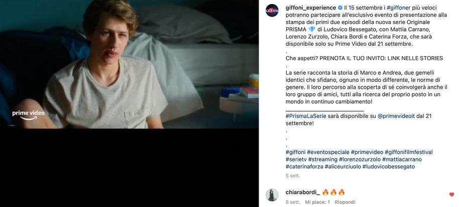 Supporto al brand con contenuti social made in Giffoni e buzzing in rete