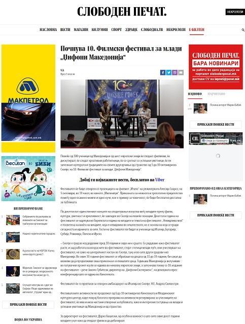 Ilprimoappuntamentoèin programma,dal5al10ottobre, aSkopjeduranteladecimaedizione diGi oniMacedoniaYouthFilm Festival.L’iniziativaèco nanziata, perlaMacedoniadel Nord,dall’AgenziaNazionaleperil Cinema,dall’Ambasciatad’Italiaa Skopjeedall’IstitutoItalianodi CulturadiBelgradoedèorganizzata dall’EnteAutonomoGi oni Experienceconil supportodell’associazionePlanetM