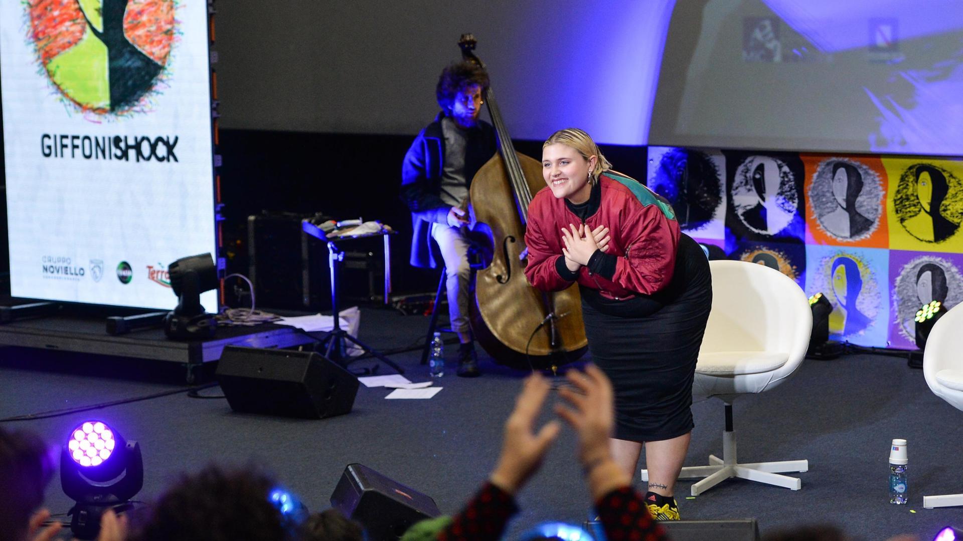 undici giovanissimi e talentuosi creativi. A completare il programma tre workshock che hanno utilizzato il modulo Whomi? (Who am I?), uno show interattivo progettato per coinvolgere i ragazzi in sala attraversocontributivideoe dibattiti stimolanti, per declinare i tre temi guida della prima edizione di Giffoni Shock: "Non è vero che vogliamo essere felici", "Non è vero che siamo creativi", "Non è vero che ci piacciano gli altri". Otto i talk che hanno animato la Sala Blu della Giffoni Multimedia Valley, dando vita ad uno scambio fecondissimo tra palco e platea, un continuo dare e ricevere di spunti ed intuizioni perché la contemporaneità va indagata senza limiti e senza posizioni precostituite. Tra i protagonisti dei talk la linguista e saggista Vera Gheno, il cantautore Cristiano Godano, lo scrittore e semiologo Stefano Bartezzaghi, la rapper BigMama e lo