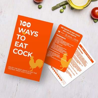 Are you hungry for cock? Lots of big, fat, juicy cock? These cards contain 100 chicken recipes that’ll satisfy all your mouth-watering needs, now you can eat cock for days!