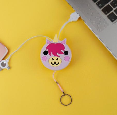 Charge your phone or tablet using our Unicorn Retractable Charging Cable. With 3 different ports whatever your device is we’ll have you covered.