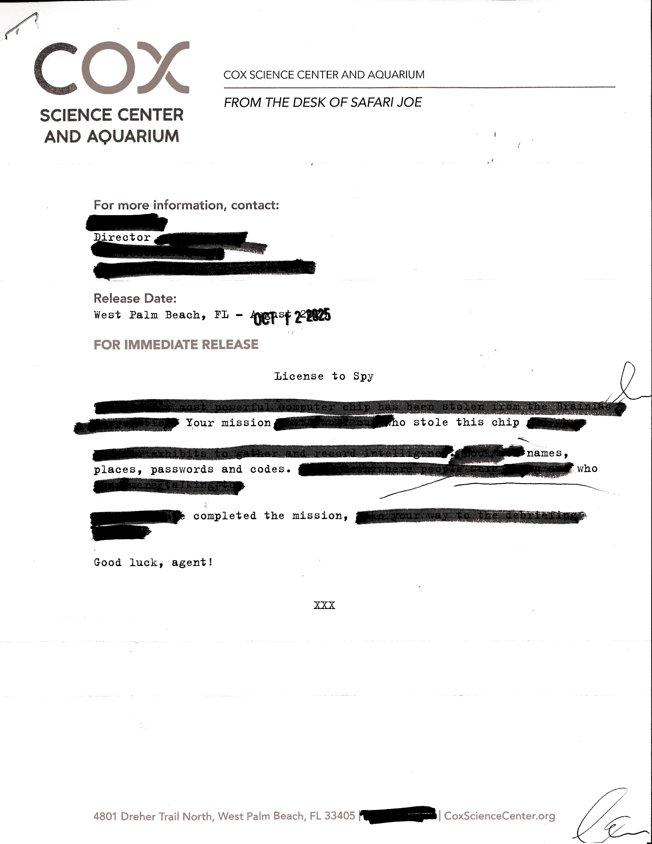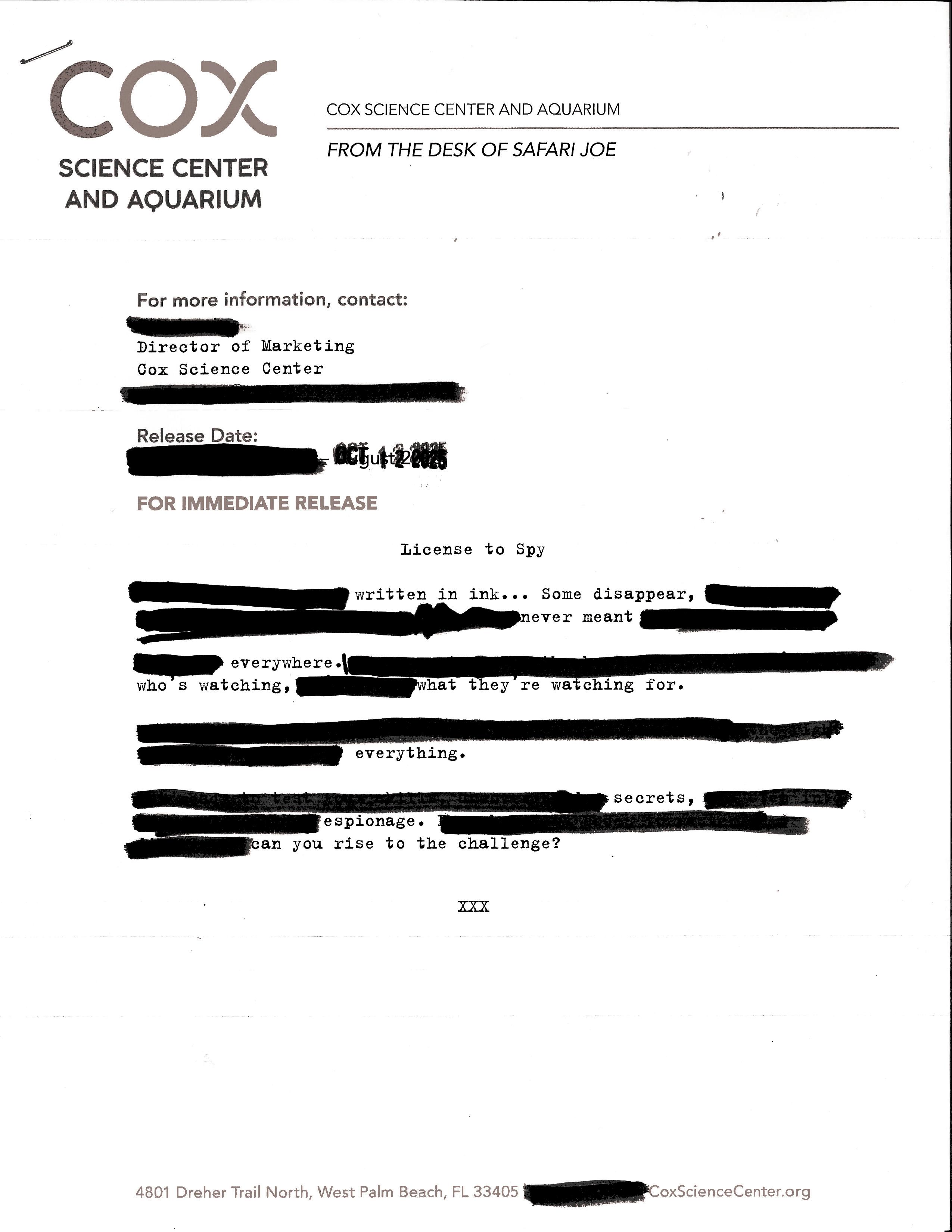 Cox Science Center and Aquarium coxsciencecenter.org/top-secret