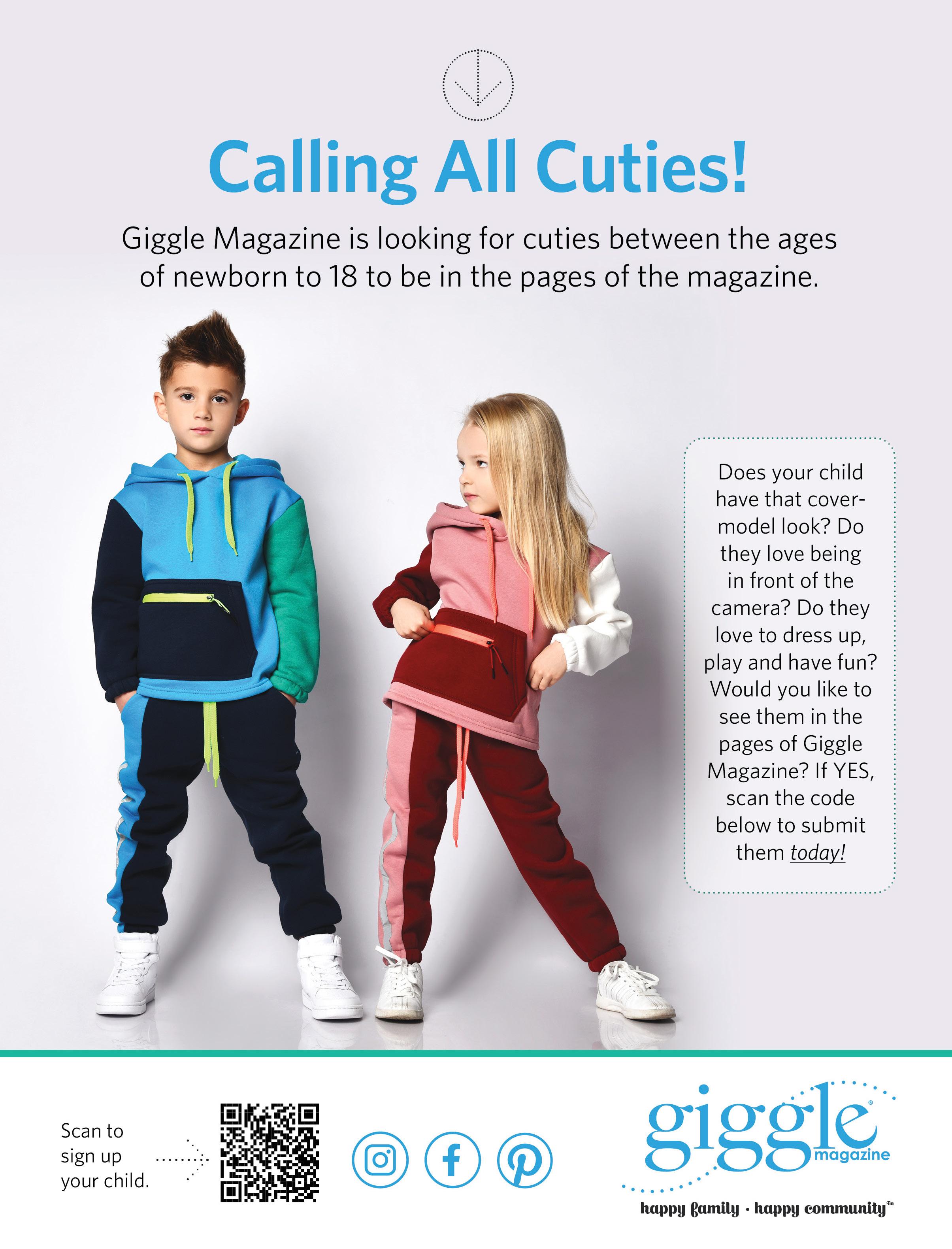 Irving Publications, LLC reserves the right to edit and/or reject any advertising. Irving Publications, LLC is not responsible for the validity of any claims made by its advertisers. Nothing that appears in Giggle Magazine may be reproduced in any way, without written permission. Opinions expressed by Giggle Magazine writers are their own and do not necessarily reflect the publisher’s opinion. Giggle Magazine will consider all never before published outside editorial submissions. Irving Publications, LLC reserves the right to edit and/or reject all outside editorial submissions and makes no guarantees regarding publication dates.