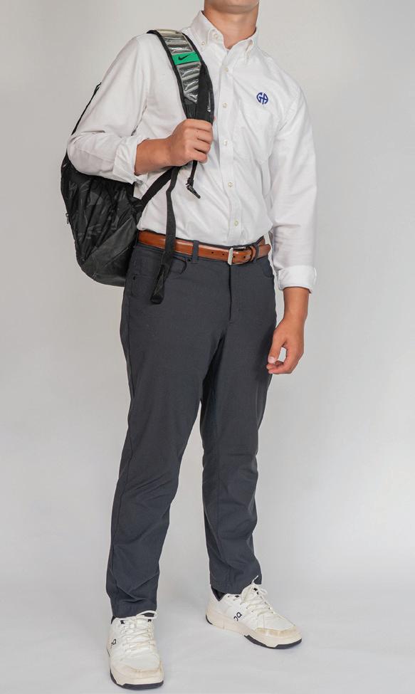From the start of school until October 15 and from Spring Break until the end of school, students may choose to wear a white or light blue oxford cloth buttondown, or a navy, gray or white polo. From October 15 through Spring Break, students must wear a white or light blue oxford cloth with required tie.