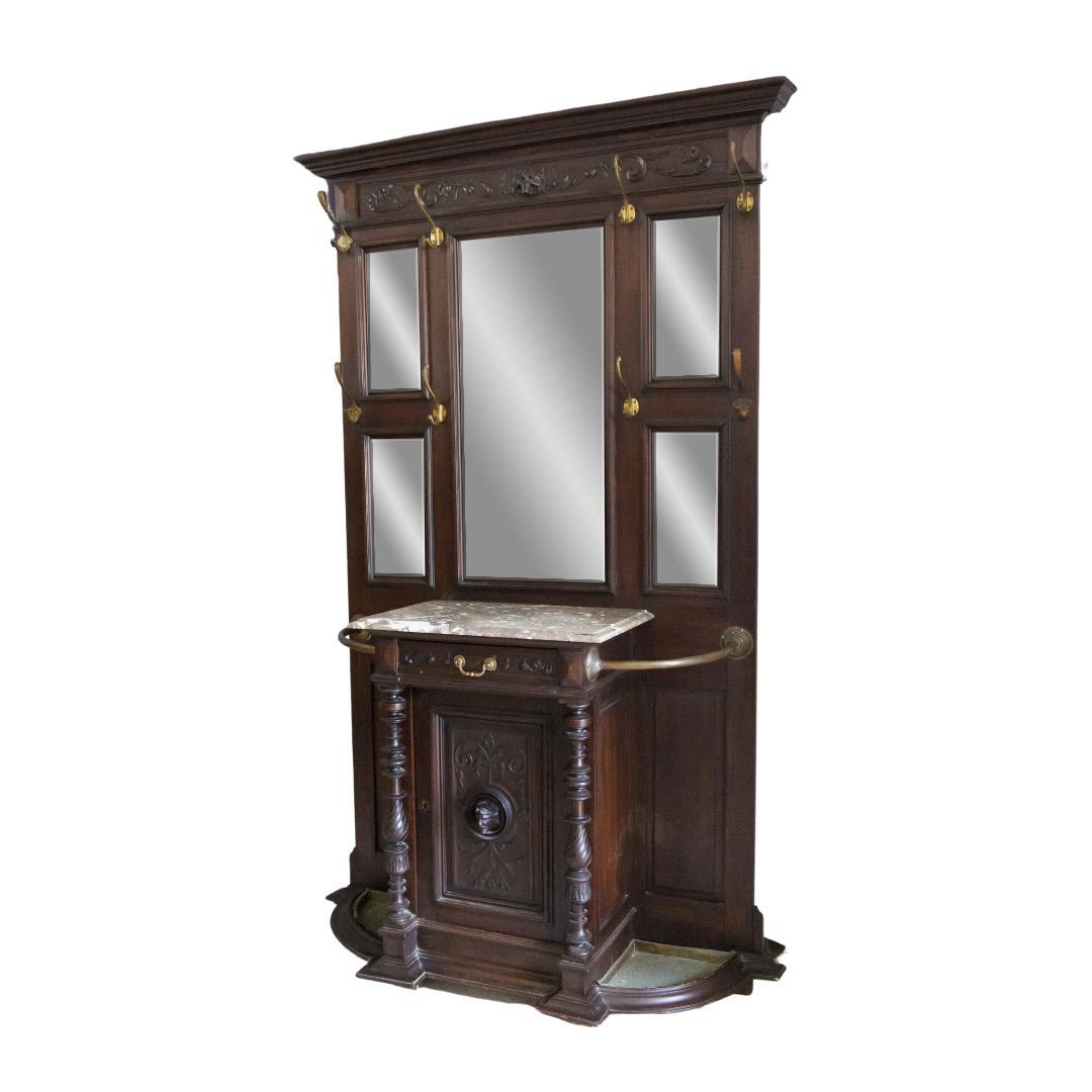 rostros fantásticos y de león alado, patas de garra, remate de concha y aplicaciones en metal con entrada para llave. Elaborado en madera tallada a mano De 2 puertas y 3 cajones.