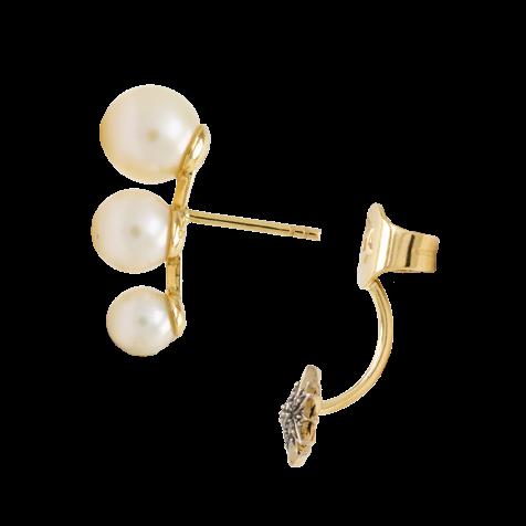 Genesis Las estrellas y los planetas del sistema solar también se observan en esta colección, 6 perla color blanco, forma geométrica de la estrella victoriana de HStern,14 diamantes capuchinos en talla brillante con un peso estimado 0.04 ct, limpios, diseñado en oro amarillo de 18 kte, con sellos 750.