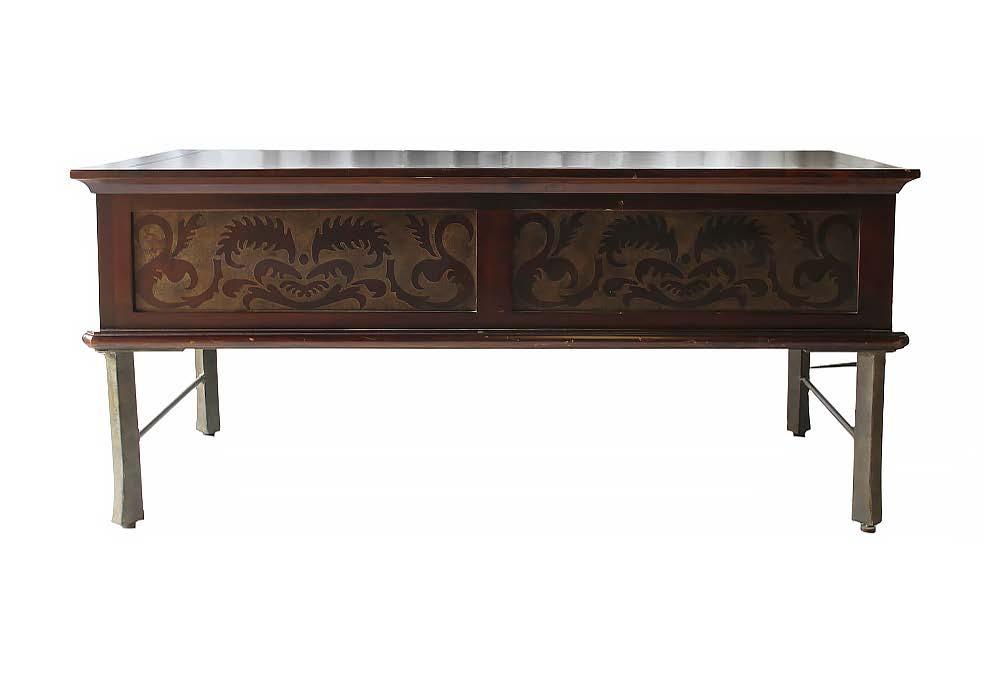 Marca Herendon. Elaborada en madera de caoba con aplicaciones de antimonio. Ensamblada a mano. Origen Estados Unidos de América. Presenta detalles marcando la antigüedad.