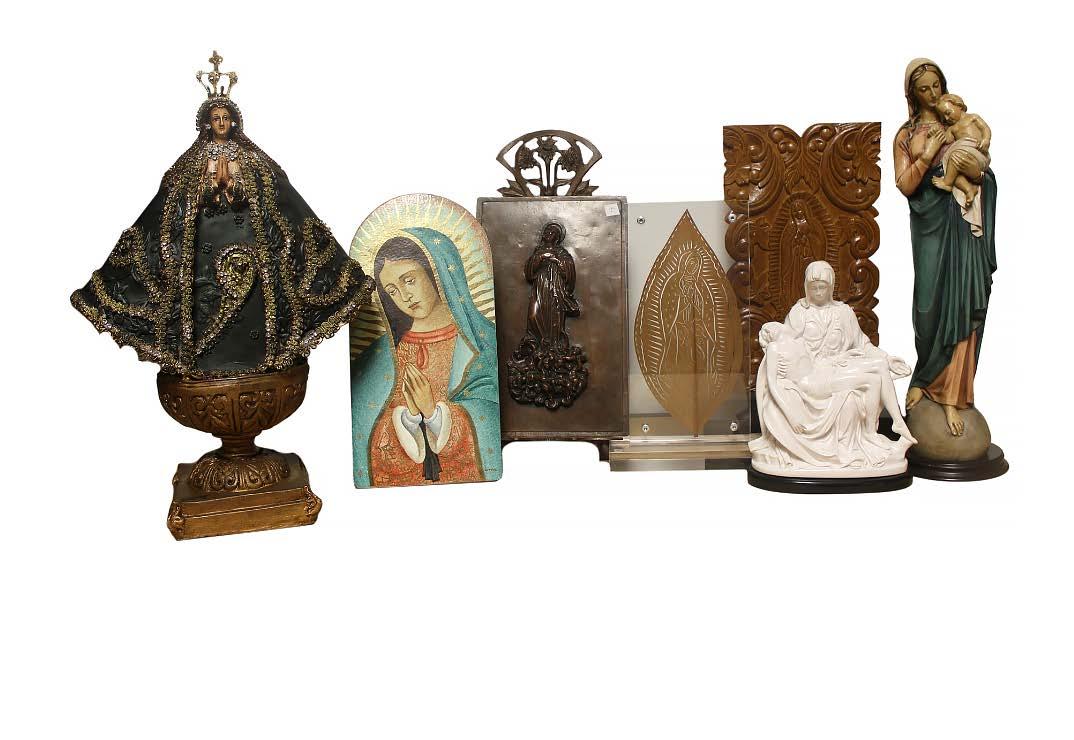 Virgen de Guadalupe. Elaborada en bronce dorado sobre base de madera. Cuenta con certificado de autenticidad. Firmada 2001.
