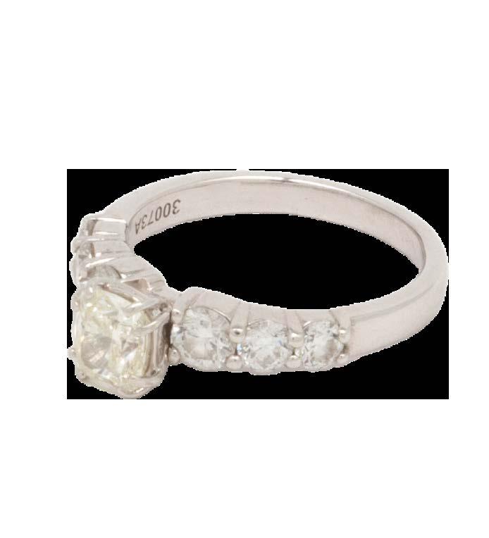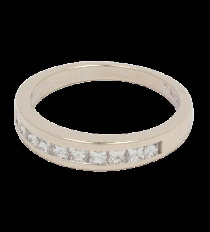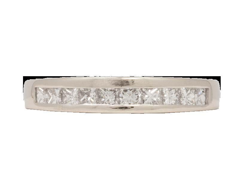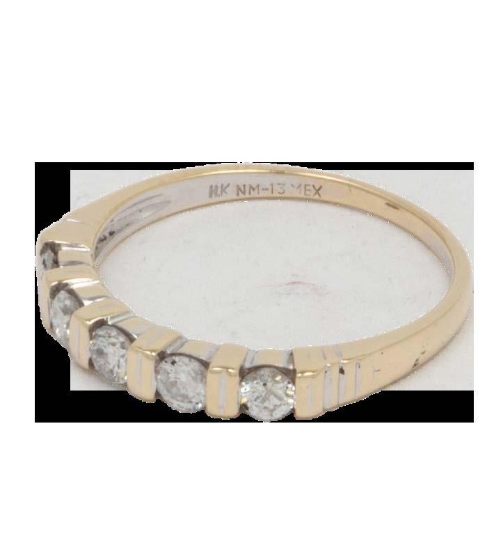DESCRIPCIÓN DE LA PIEZA 10 diamantes en talla princes con un peso estimado de 0.50 ct, blancos casi limpios, en oro de 14 kte, con kintos y grabados; S 14k H.