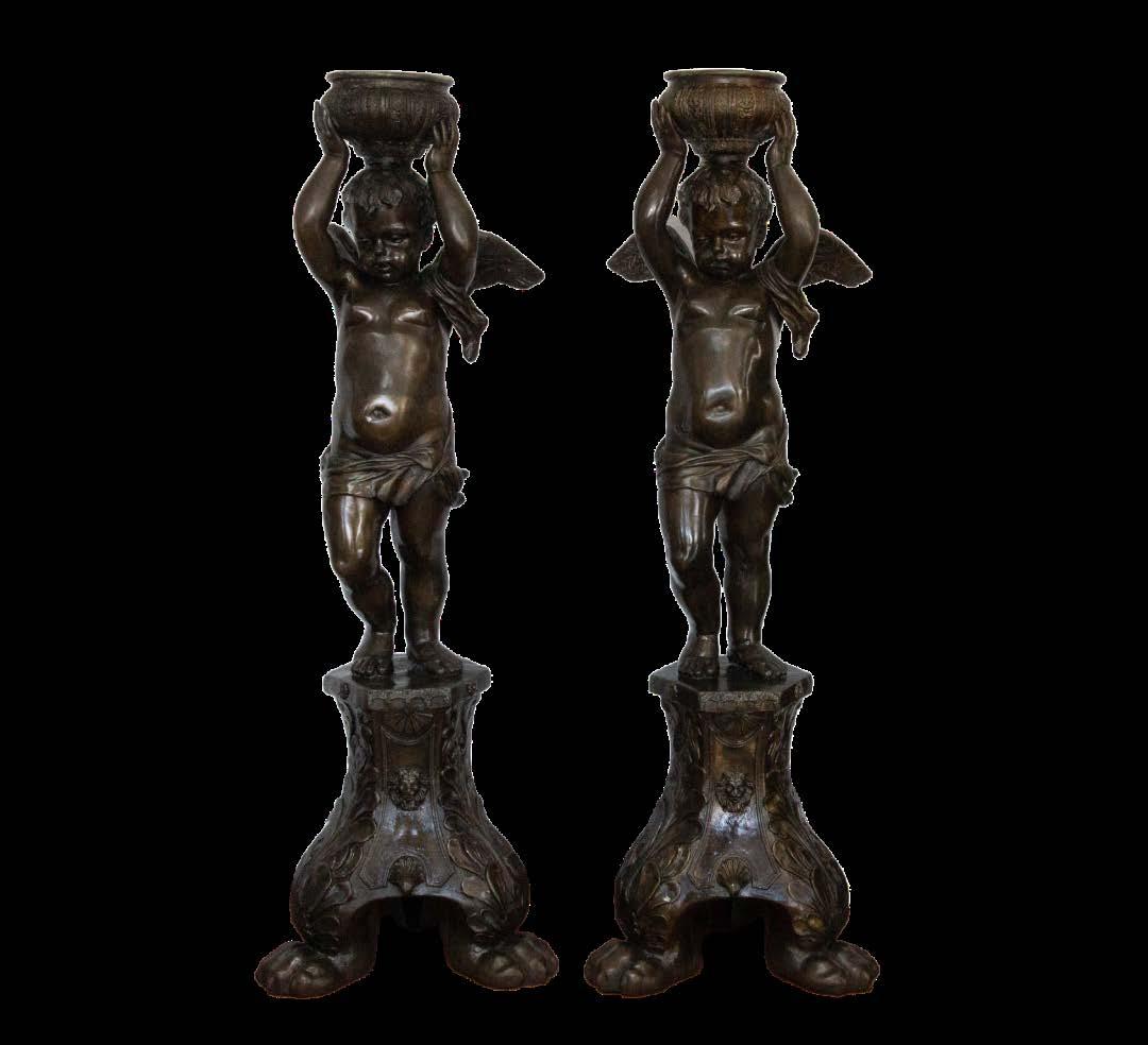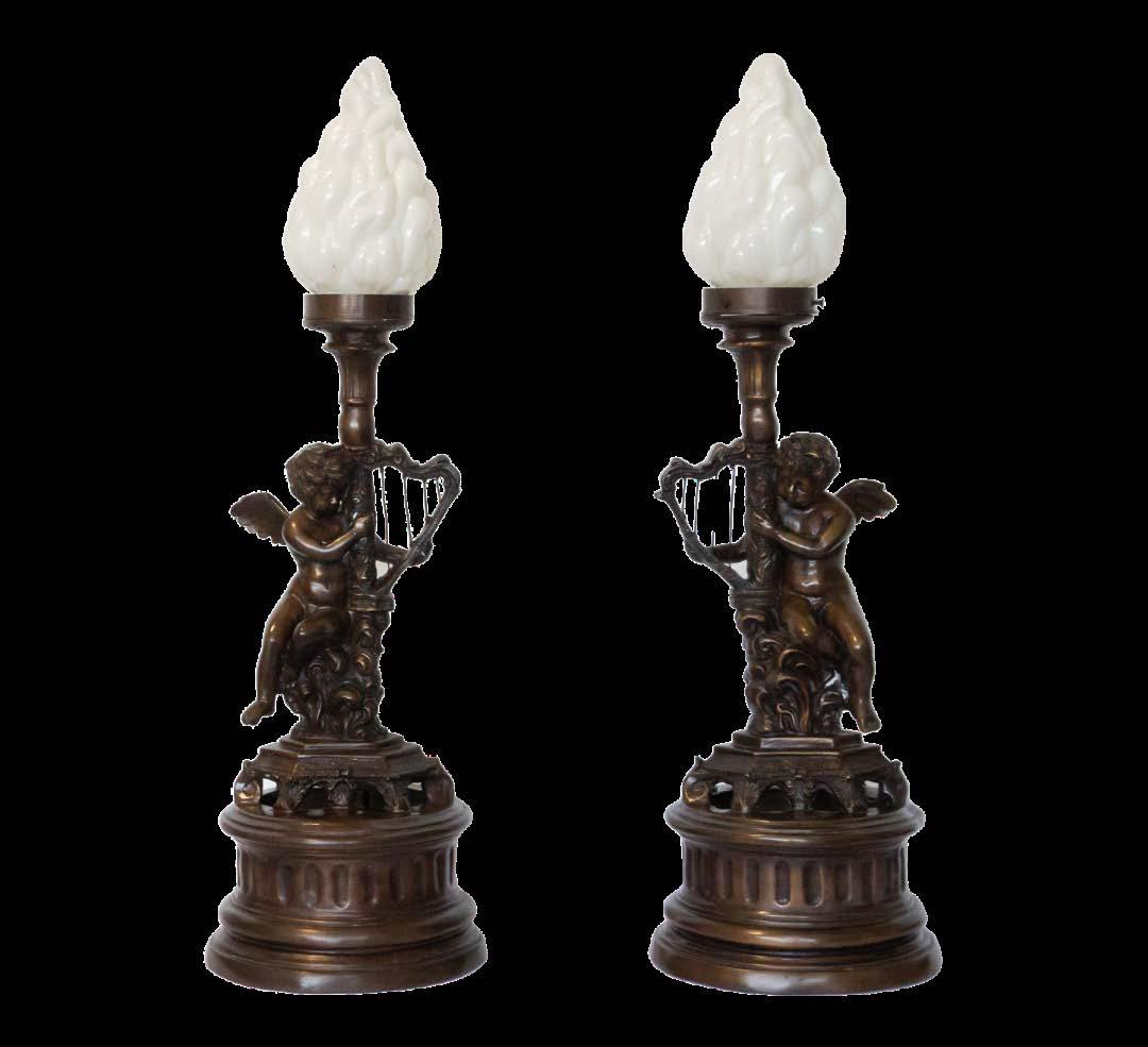 Motivos florales y ángeles Elaborado en porcelana pintada a mano en blanco y colores tono pastel con pantallas de tela 2 piezas en total