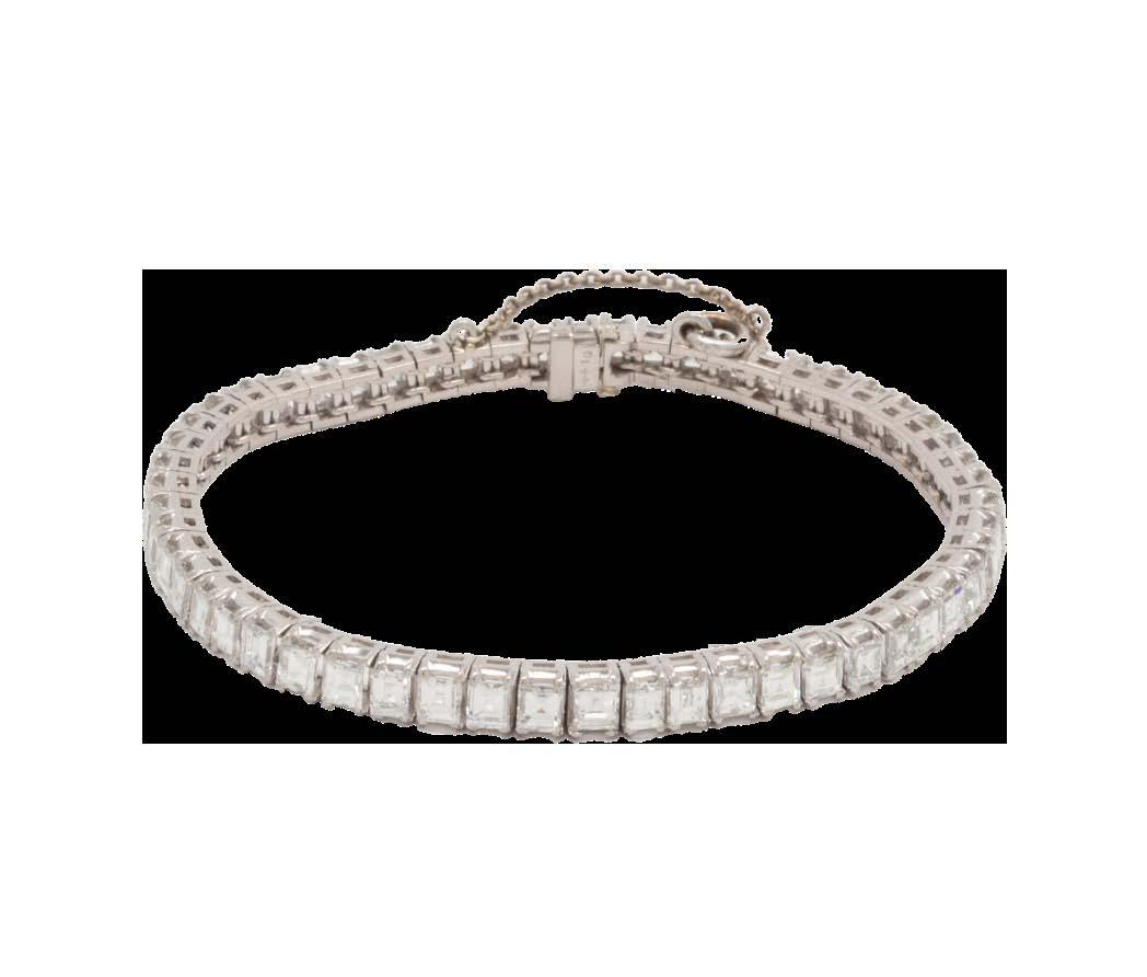54 diamantes en talla baguet y trapecios con un peso estimado 0.92 ct, blancos con ligero detalles, 51 diamantes en talla brillante con un peso estimado 1.47 ct, blancos con detalles, diseñado en oro blanco de 14 kte con sellos y kintos 14K W, con un peso 6.8 gramos. Incluye cadena en oro blanco de 14 kte con sellos y kintos 14 Kt F585