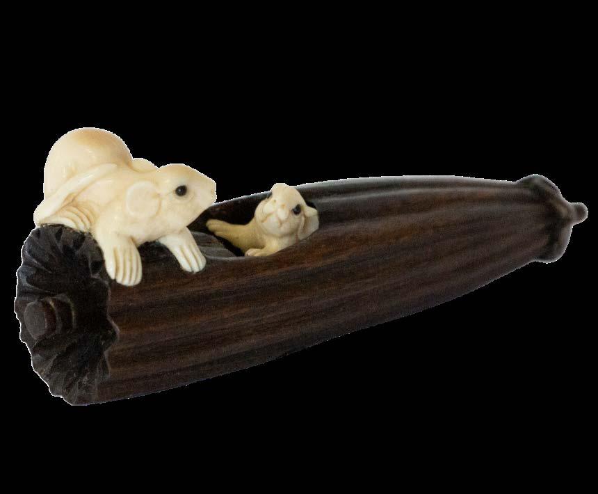 Figura de cisne al frente y base decorada con patas de caracoles Elaborado en cerámica pintada y esmaltada a mano con decoraciones en metal dorado
